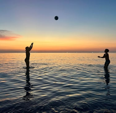 Beim Schnorcheln hat es Maxim dann leider ein wenig übertrieben – sein Ohr hat das nicht ganz so gut verkraftet, und so hat er sich eine Mittelohrentzündung eingefangen. Natürlich hätten wir darauf gerne verzichtet, aber wir machen das Beste daraus. Statt weiter abzutauchen, spielen wir jetzt viel im und am Wasser, werfen uns den Ball zu und genießen die gemeinsame Zeit auf eine ruhigere Weise.